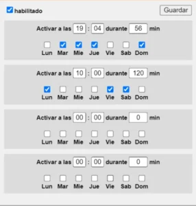Relés programables: programe horarios y fechas de activación para bombeos y electroválvulas