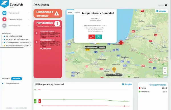 ZEUS no se limita a la visualización, permite también la reconfiguración de estaciones remotas sin necesidad de desplazarse, el envío de órdenes o la gestión de usuarios y estaciones. La integración en otras plataformas está garantizada mediante los estándares más comunes actualmente como OPC UA y API REST.